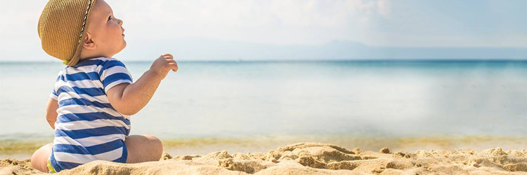 Bei heissen Temperaturen reichen ein Kurzarm-Body oder ein dünnes T-Shirt und eine leichte Hose. Ein Sonnenhut schützt den Kopf deines Babys vor der Sonne.