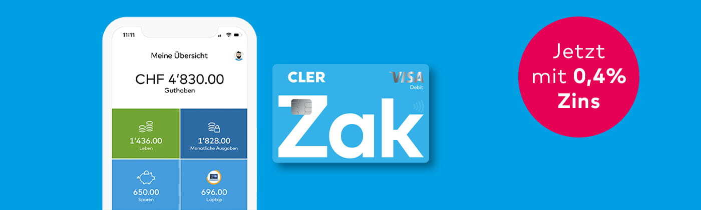 - Du legst Wert auf Sicherheit – Zak wird von der etablierten Schweizer Bank Cler betrieben.