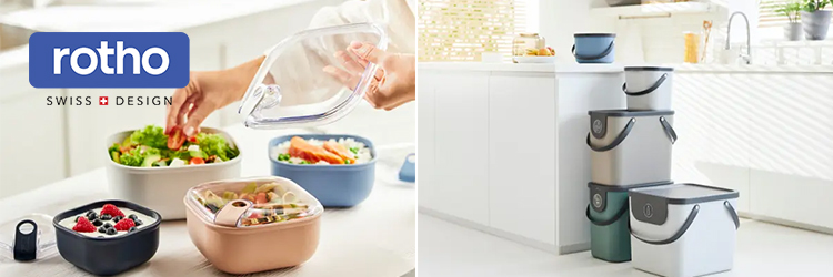 Rotho ist ein Schweizer Hersteller und Onlineshop für hochwertige Kunststoffprodukte für Küche, Haushalt und Büro. Im offiziellen Shop von Rotho findest du vor allem Aufbewahrungsboxen, Frischhaltedosen, Abfalleimer, Reinigungsutensilien und Office‑Zubehör.
